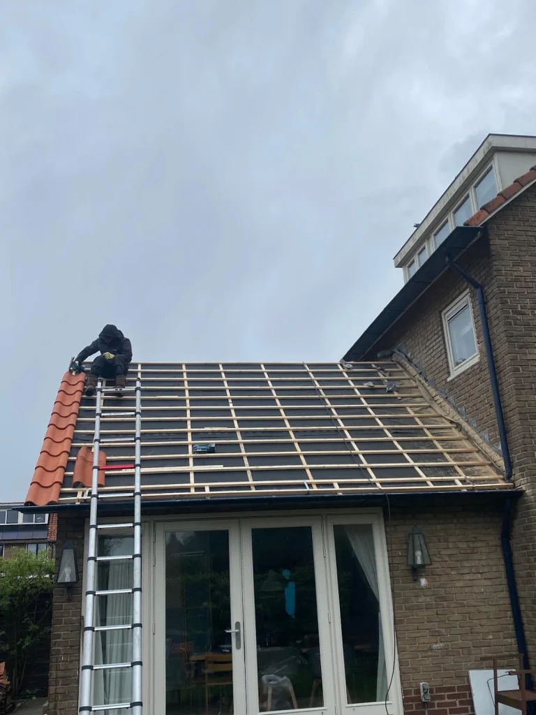 Bij deze woning in Amsterdam was het bestaande pannendak sterk verouderd. De dakpannen waren versleten en de onderliggende constructie bood onvoldoende zekerheid voor de komende jaren. Om lekkages en verdere slijtage te voorkomen, is gekozen voor een volledige dakrenovatie.