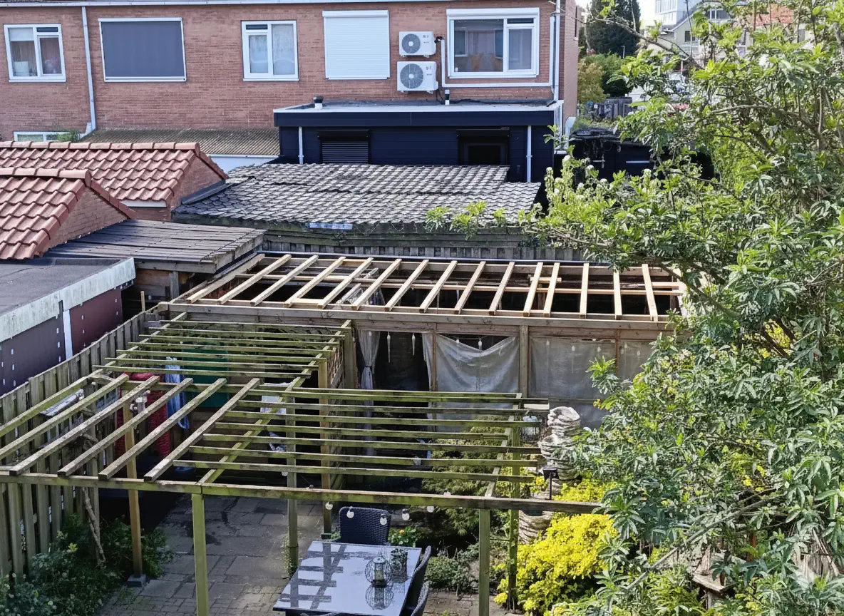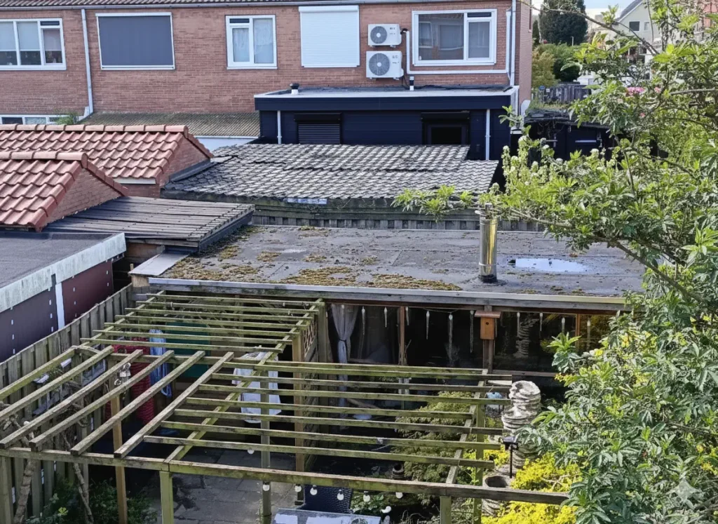 Bij deze woning in Zeist was het platte dak van de uitbouw verouderd en zichtbaar aan vervanging toe. De bestaande dakbedekking vertoonde slijtage en de constructie bood onvoldoende bescherming tegen vocht en temperatuurwisselingen. Om toekomstige lekkages te voorkomen en de levensduur van het dak te verlengen, hebben wij het volledige dak vernieuwd.